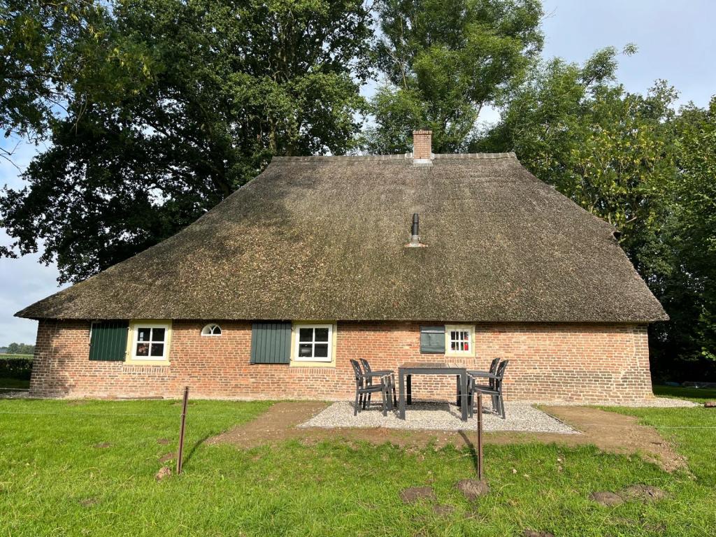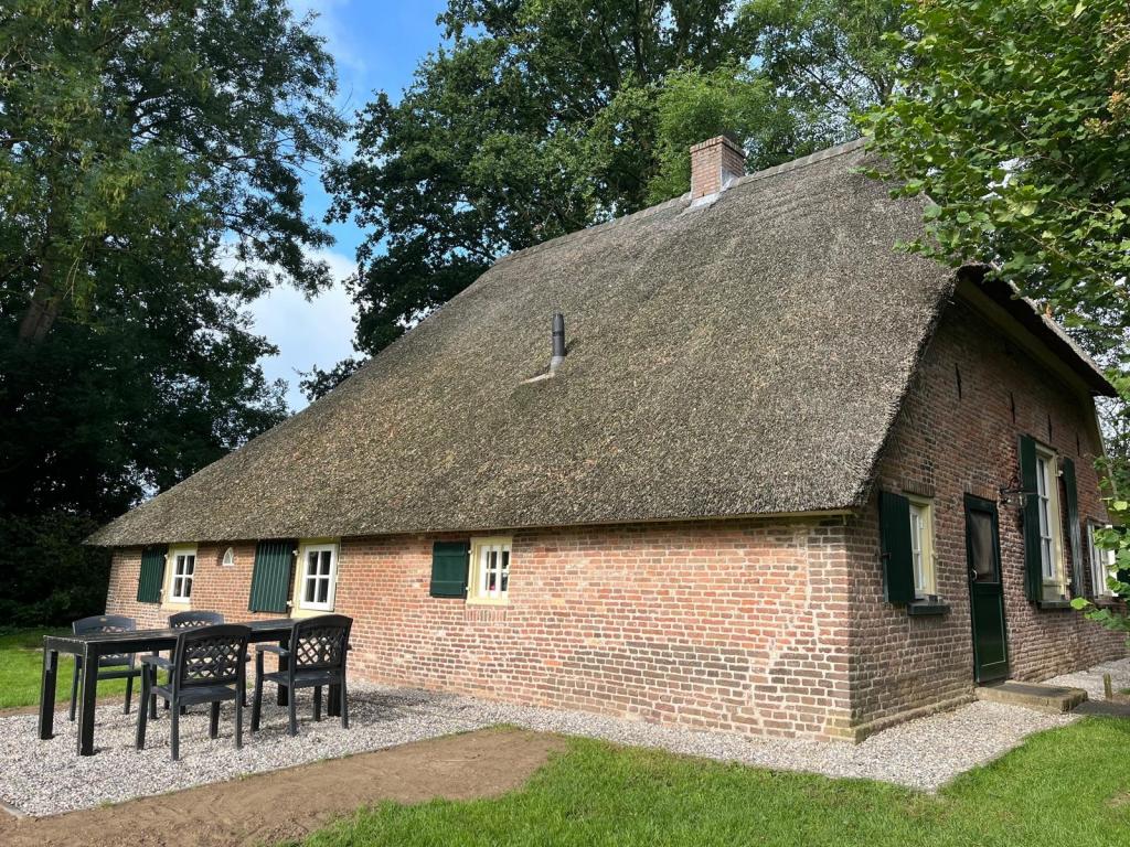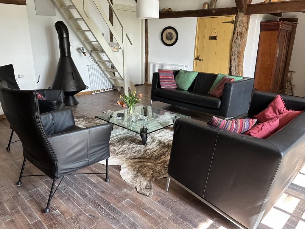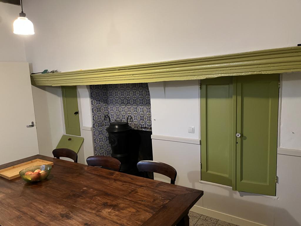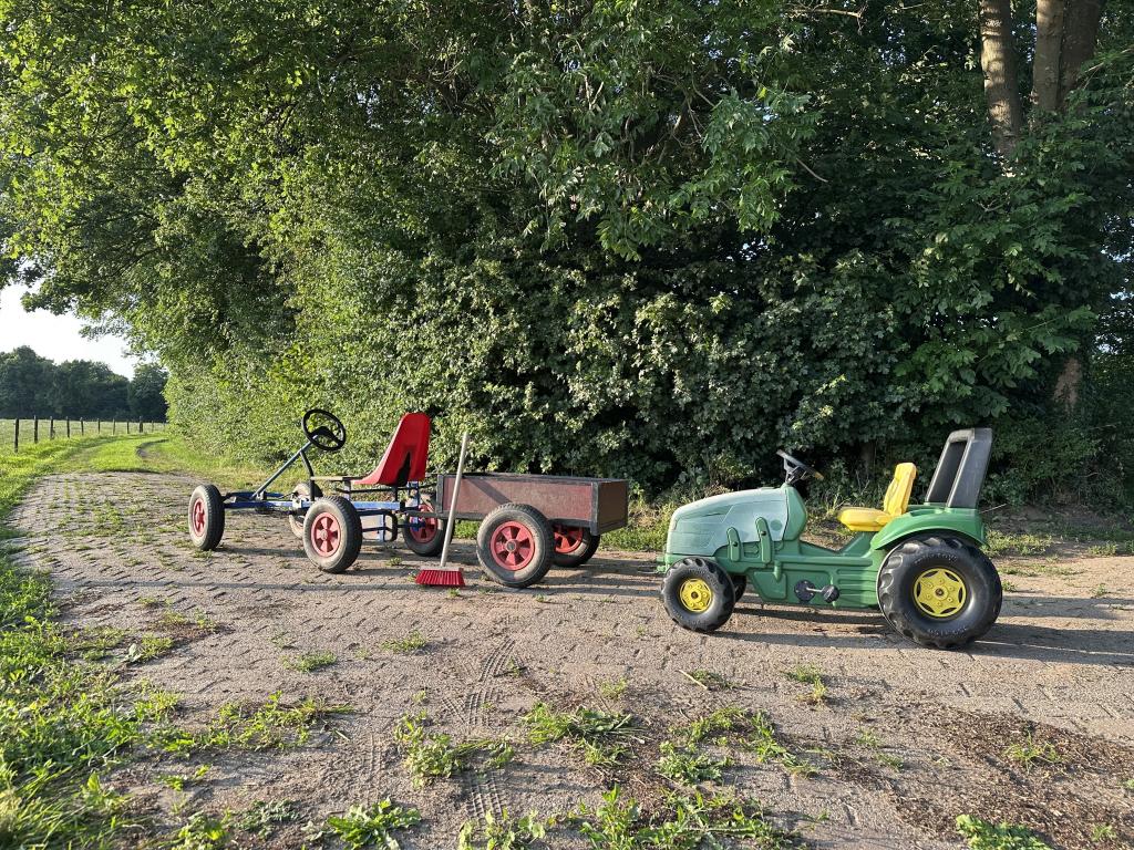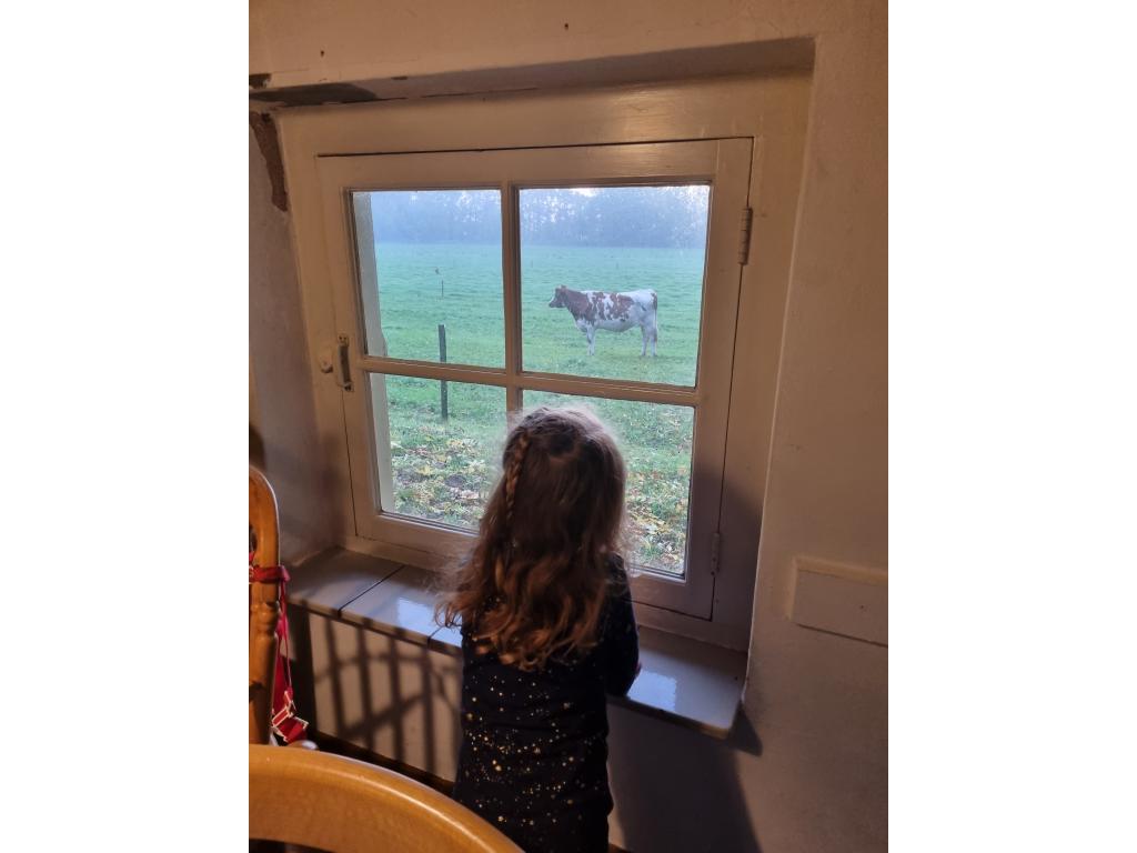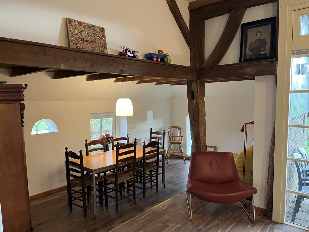 Een charmant detail zijn de lage voordeur en één lage slaapkamerdeur, een knipoog naar vroeger, toen mensen nog kleiner waren. Een heerlijke plek voor kinderen, wie natuur, ruimte, comfort en historie waardeert.